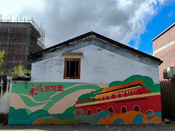 实践团成员们深入调研,结合当地丰富的红色文化资源,精心设计了一系列独具特色的墙绘方案。这些墙绘作品不仅美化了乡村环境,更以其独特的艺术魅力,潜移默化地影响着当地居民,将文明理念融入日常生活,实现润物细无声的文化传承。